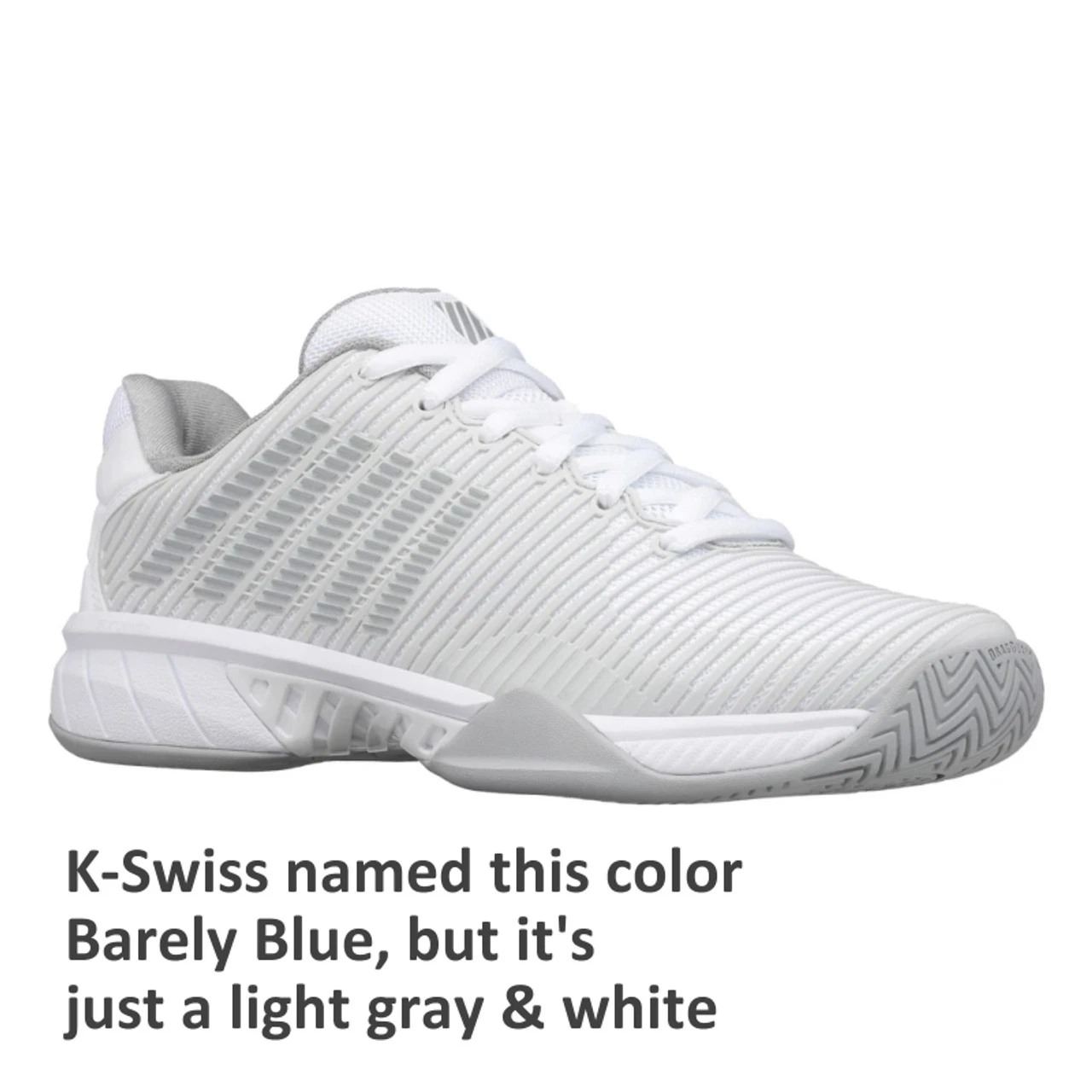 Color Note:Â Barely Blue is K-Swiss’ name for a light gray. This shoe is NOT blue.