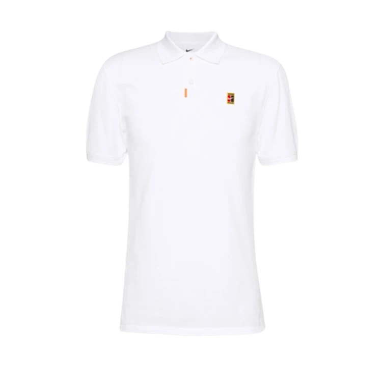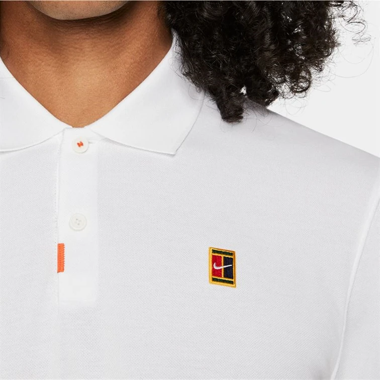 The Nike Heritage Men’s Slim-Fit White Polo sports a subtle orange label on the placket, an orange thread on the top button, and of course, the heritage NikeCourt logo on the breast, giving it a low-key dash of colour.