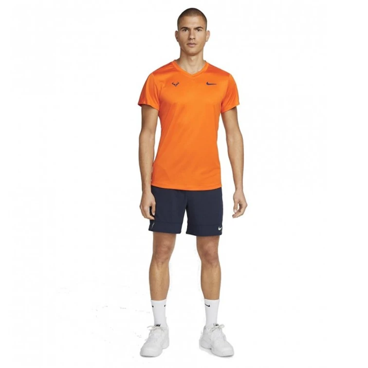 Fit-wise, the shoulder seams are rolled back at an angle so you can swing freely during overheads and the overall shape of the t-shirt is slim and tailored. Finally, it features the Nike and Rafa Bull logos on the chest.