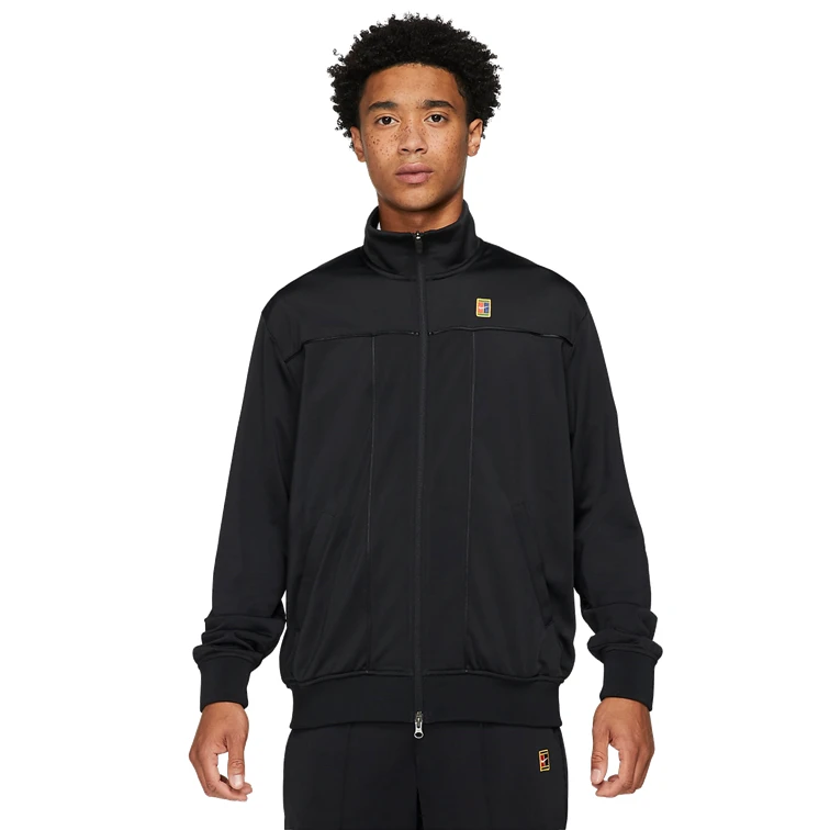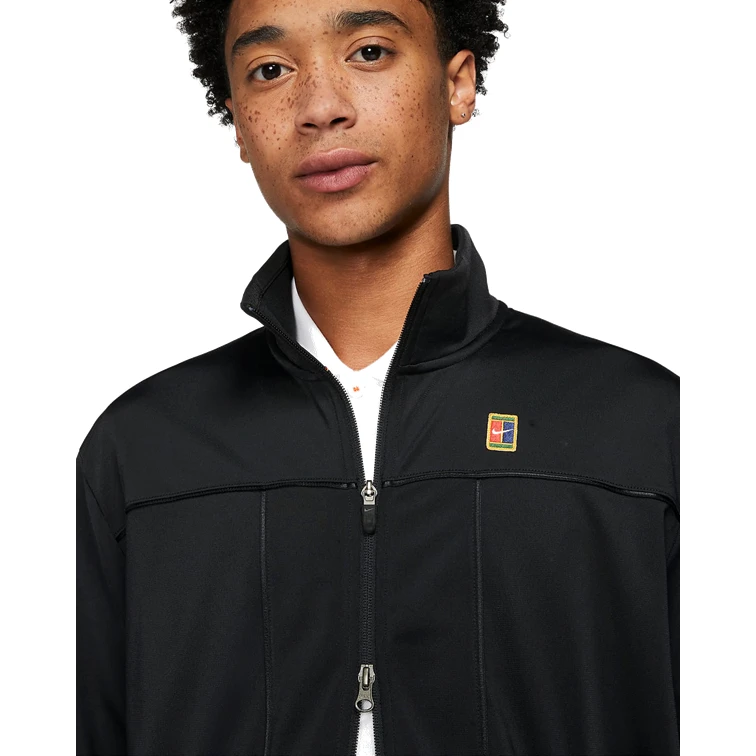 Taking its cues from the layout of a tennis court, the NikeCourt Jacket lets you rep your favourite sport long after your match ends. Its smooth knit fabric and ribbed details create the look and feel of a classic tracksuit jacket.This product is made from 100% recycled polyester fibres.