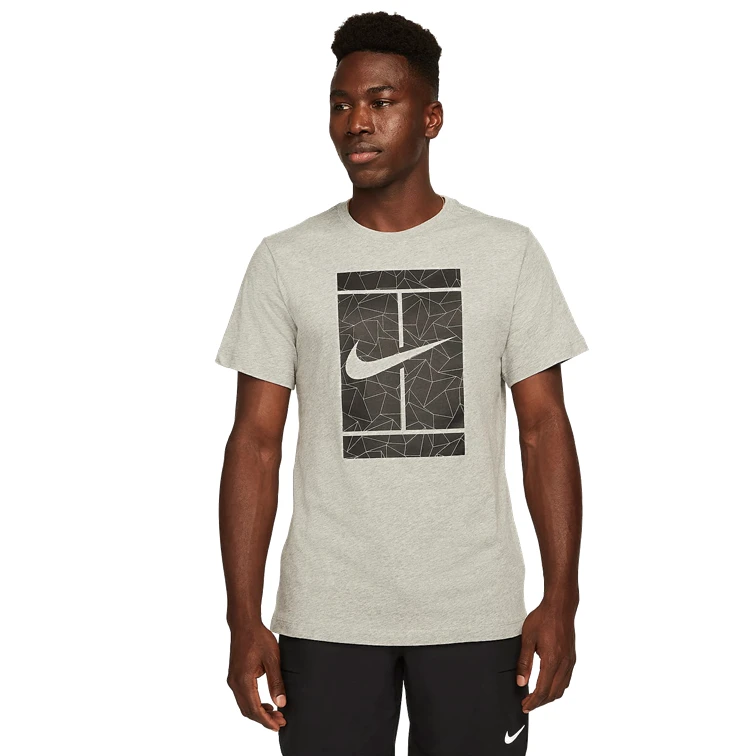 The NikeCourt T-Shirt elevates a comfortable cotton essential with an oversized NikeCourt logo. The bold, blocky graphic inside of the logo is inspired by the geometric lines of the court.