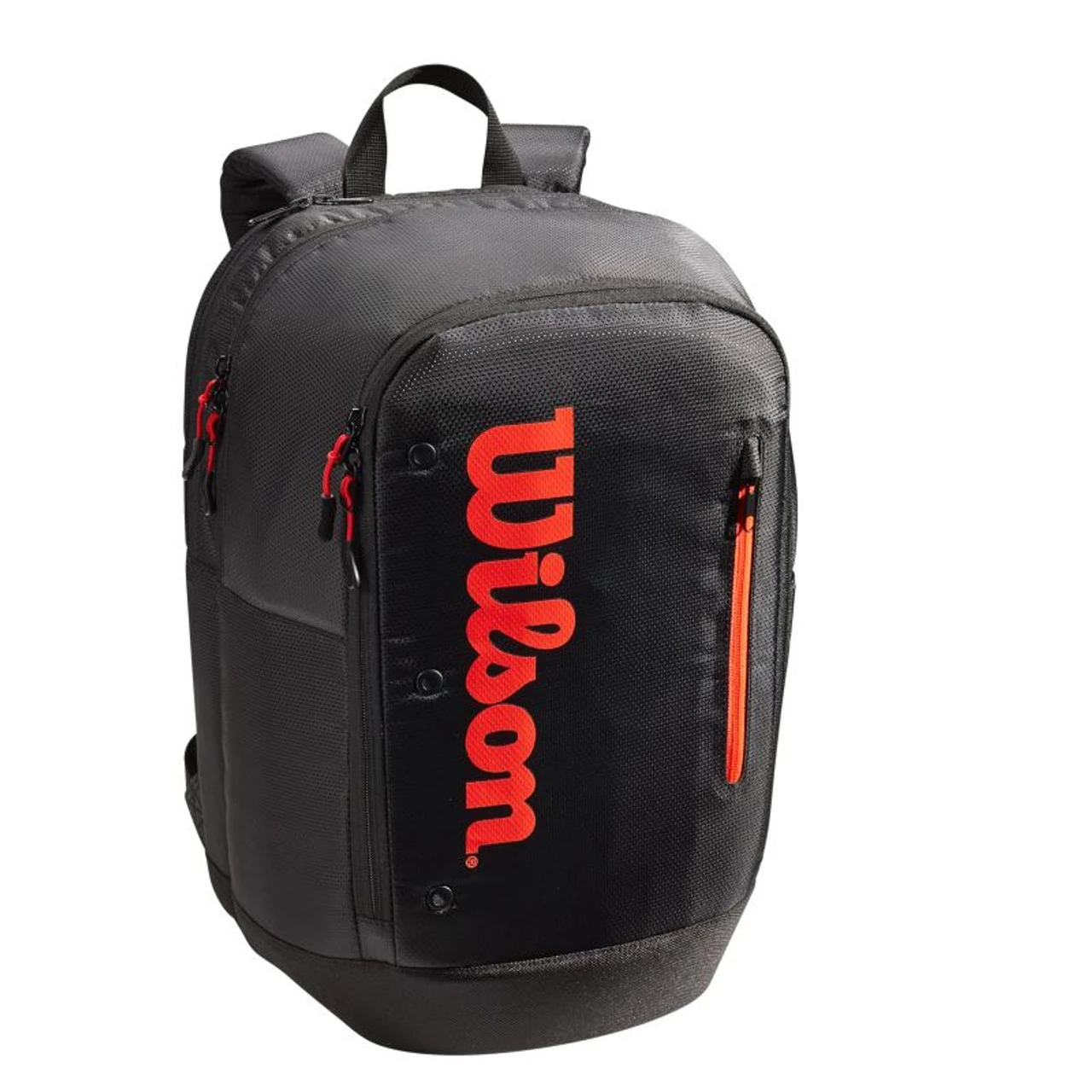 Wilson’s Tour Collection encompasses sharp design, efficient functionality and long-lasting durability for tennis players worldwide. Equipped with a back compartment that holds up to 2 rackets with locking zippers, this backpack offers an internal sleeve for laptops or tablets along with a front ventilated pocket to help air out shoes or dirty clothes. A great choice for paddle, pickleball, tennis or squash!